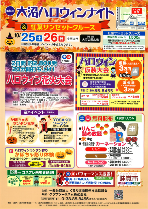 第14回 大沼ハロウインナイト&紅葉サンセットクルーズが開催されます。